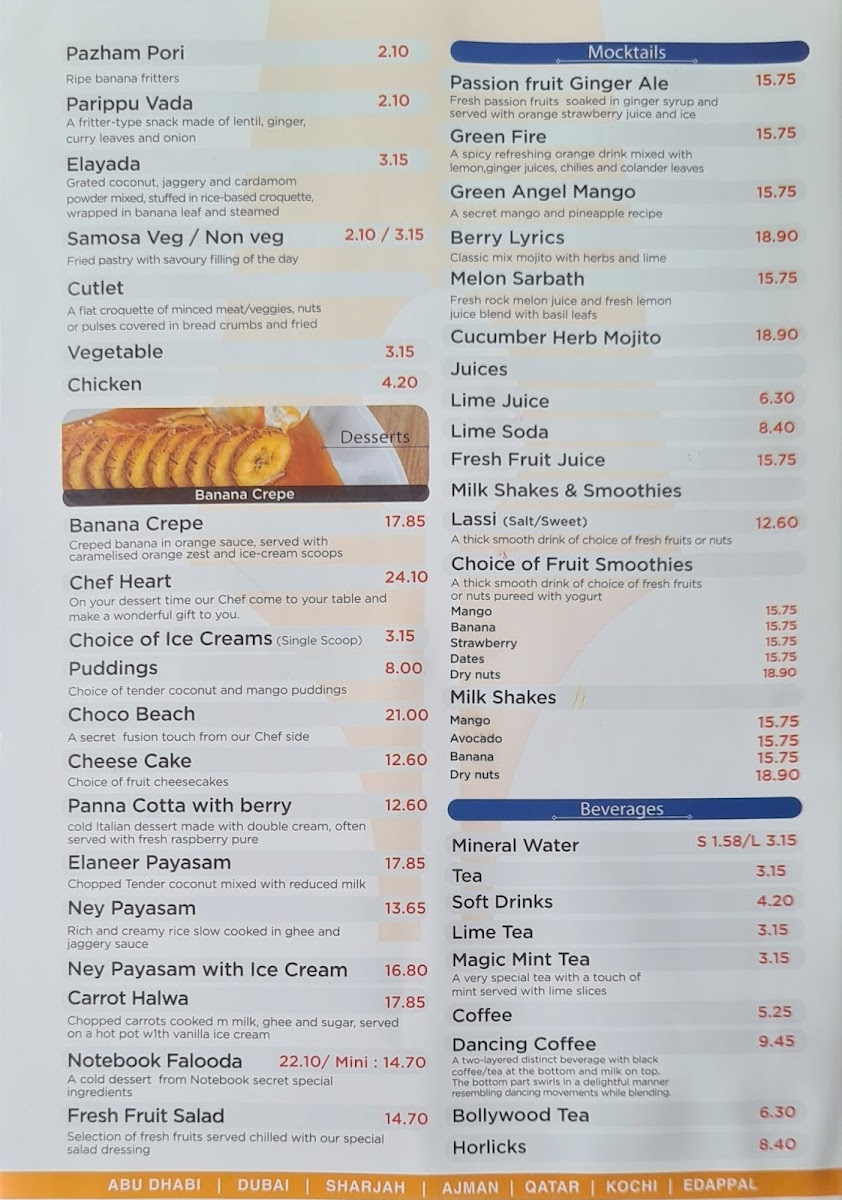 Welcome to Notebook Restaurant, a culinary gem nestled in Al Danah, Abu Dhabi. This vibrant eatery is renowned for its exceptional menu that reflects authentic regional flavors. The highlight here is undoubtedly the mango fish curry, a dish celebrated for its rich flavors and perfect preparation. Guests rave about the traditional Malabar biriyani, which is expertly cooked and embodies the essence of Malabar cuisine.
